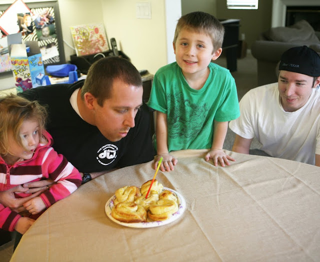 One of Dave's birthday wishes this year was a for a "snow day" with the family. So that's what we did. It was a lot of fun. Another birthday wish was for homemade orange rolls as a birthday cake. I obliged...they were not perfect but still tasted good and they were from scratch! Happy Birthday, Dave!